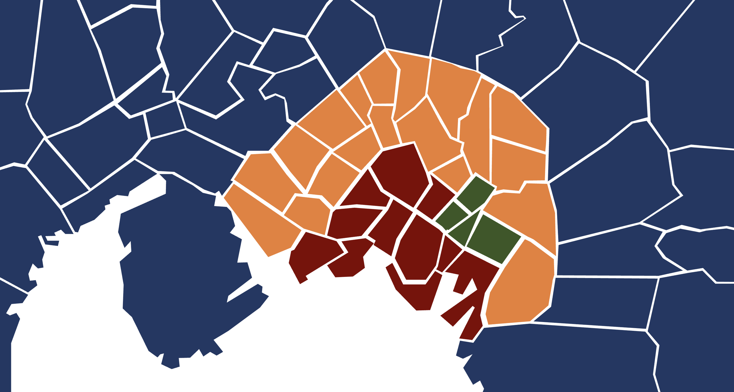 Det oransje området viser Oslo innenfor Ring 2. Her bor det i underkant av 170 000 mennesker. Bør dette være egnet til en egen sentrumsbydel? De mørkere områdene viser de som også har en rekke nasjonale funksjoner, der en sentrumssatsing også bør favne statlige aktører. De grønne stedene er Grønland, Vaterland, Youngstorget og Hausmannsområdet. Her er det et stort potensiale for å jobbe i et bedre samspill, for økt trygghet.